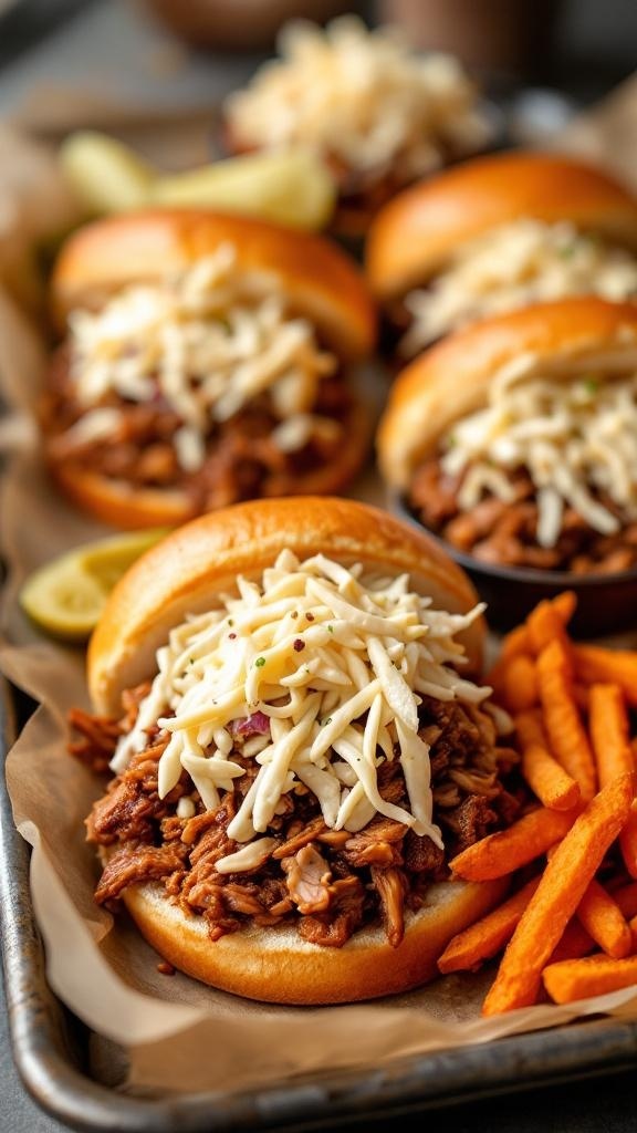 - Assemble the Sandwiches: Shred the cooked pork and pile it onto hamburger buns. Top with coleslaw and serve with sweet potato fries on the side.